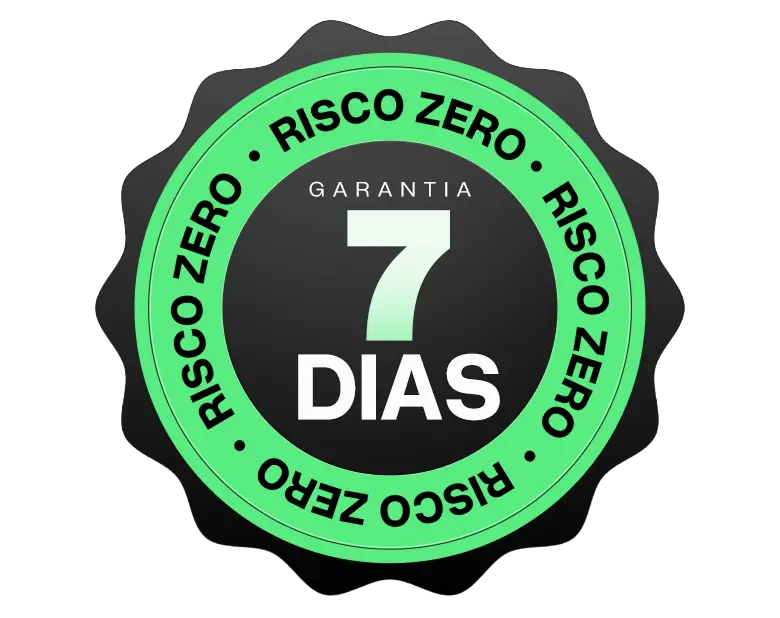 Você tem garantia de 7 dias, usa o checklist, testa a planilha, assiste à masterclass, se não ajudar a clarear o processo devolvemos 100% do investimento.